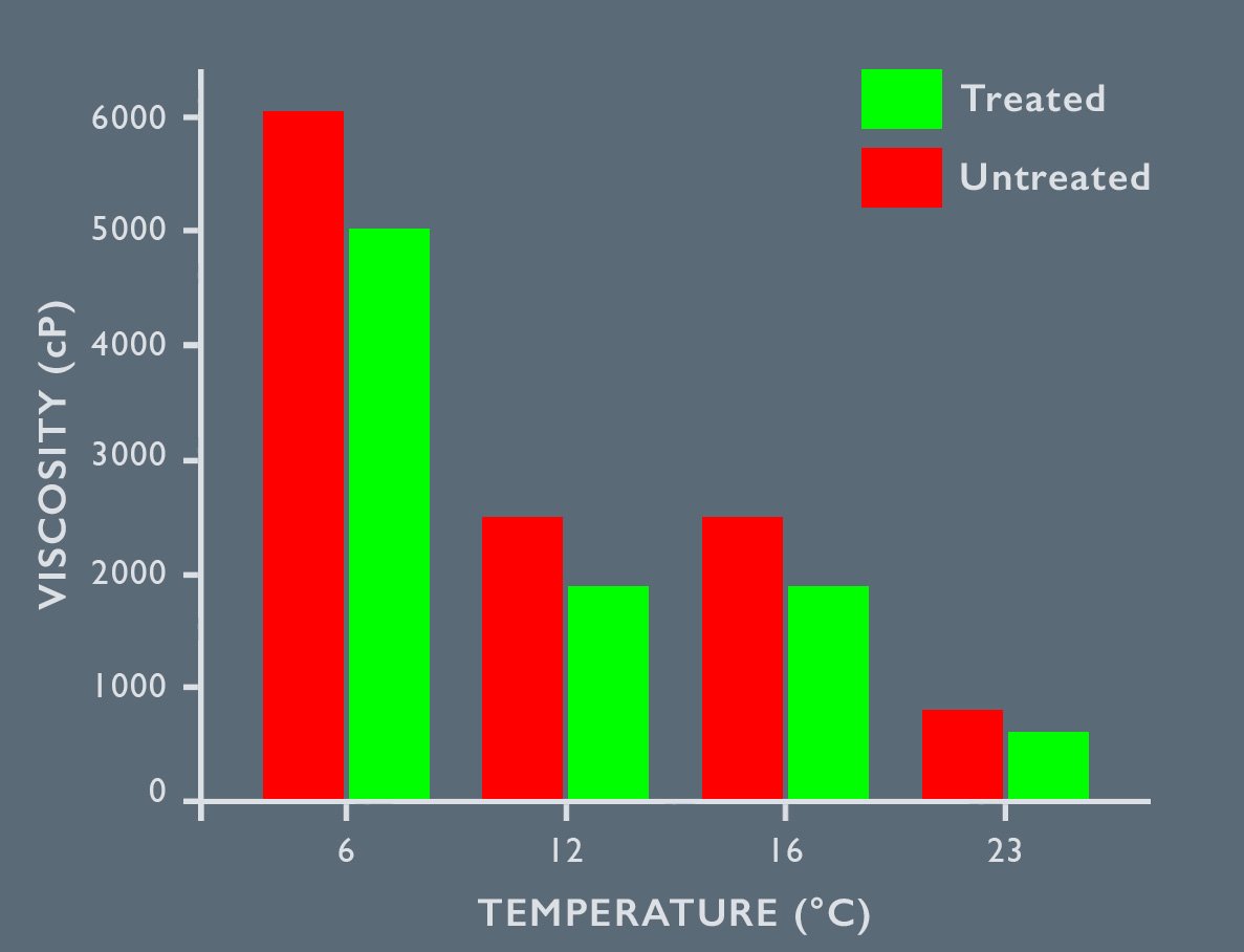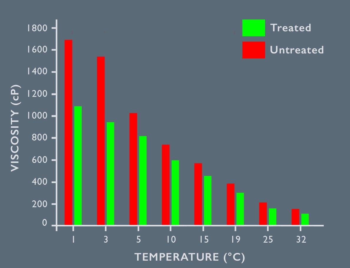- Medium to Heavy Crude: a remarkable 50% viscosity reduction consistenly achieved.